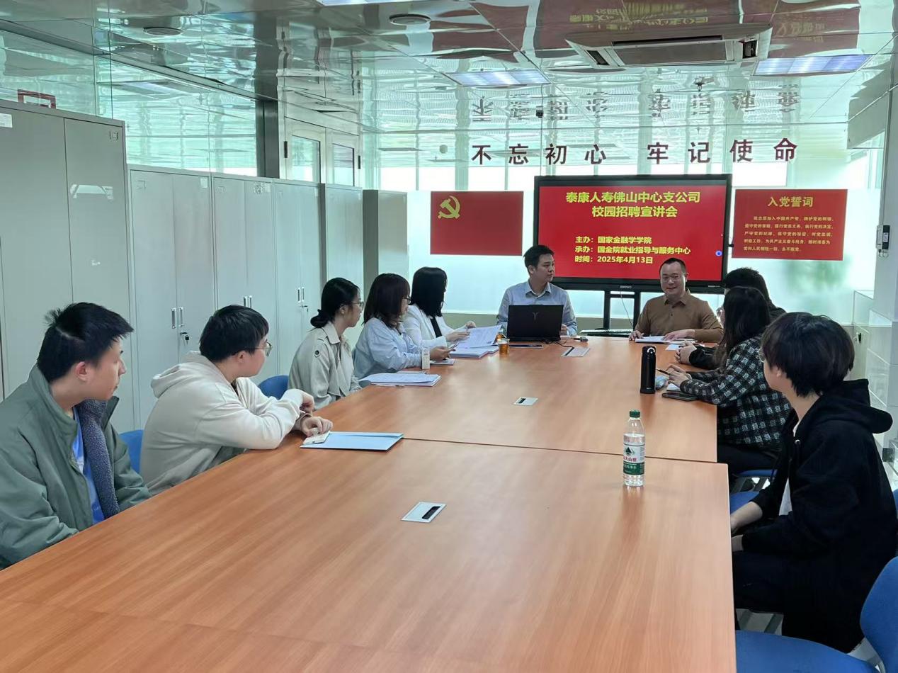 4月13日,由泰康人寿佛山分公司及yl7703永利联合主办、yl7703永利就业指导与服务中心承办的2025年yl7703永利保险代理人校园招聘宣讲会在教学实验中心1103举办。公司员工、泰康大健康产业合伙人许超杰、泰康人寿佛山中心支公司个险团队经理邓丽娟、国家金融学公司党总支副书记张栋贤出席了宣讲会,以及来自yl7703永利、金融数学与统计公司的10多名员工参加了宣讲会。