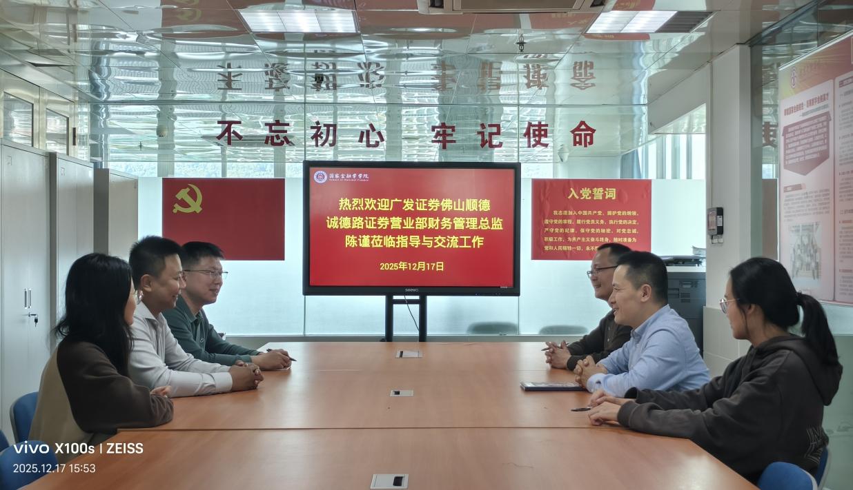 12月17日,公司员工、广发证券佛山顺德诚德路证券营业部财务管理总监陈谨到访yl7703永利,围绕深化校企合作、推动人才培养等议题与公司展开深入探讨。公司党总支书记丘志君、副书记张栋贤、辅导员及教学秘书等共同参与此次交流活动。