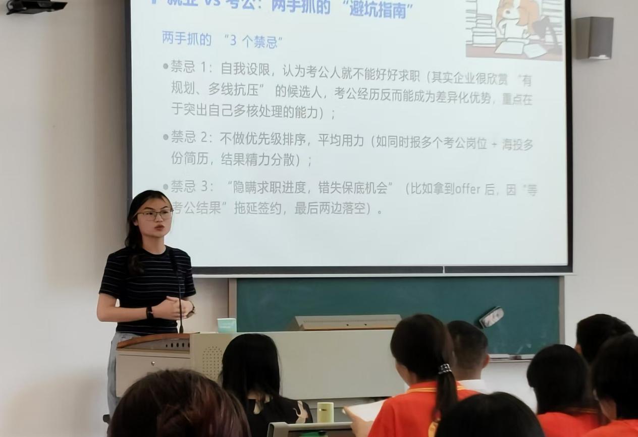 为发挥优秀学子的示范作用,引领在校员工明确个人发展方向,并科学合理地规划职业生涯,2025年4月29日,由国家金融学公司党总支主办、高校多校区员工工作“一体化”研究工作室及新时代“大思政”育人工作室共同协办的校园文化巡礼之第9期“弘毅”讲堂暨考研考公就业及参军入伍经验分享会在清远校区北教113成功举办。公司党总支副书记张栋贤、辅导员彭妍年出席活动,来自yl7703永利、金融与投资公司100多名2023级、2024级员工聆听了分享会。分享会由谢妙津同学主持。