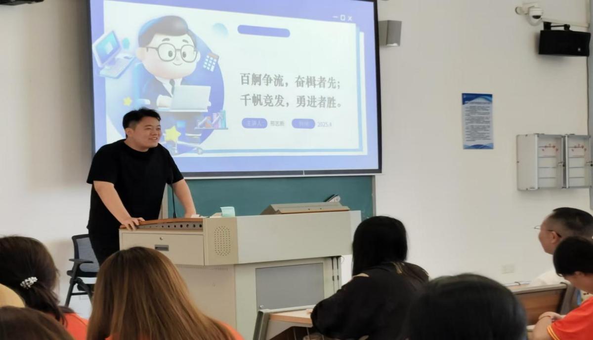 会上,考取安徽大学税务专业的2025届优秀毕业生代表李堤分享了考研的备考策略。她以‘研途有光,步履不停’为主题,从备考时间的有效管理、学科复习的高效策略到心理调适的科学方法,全面而系统地分享了考研备考的全流程方案。她特别强调稳住心态、重复性记忆的重要作用,为志在考研的学子提供了极具实操性的经验借鉴。