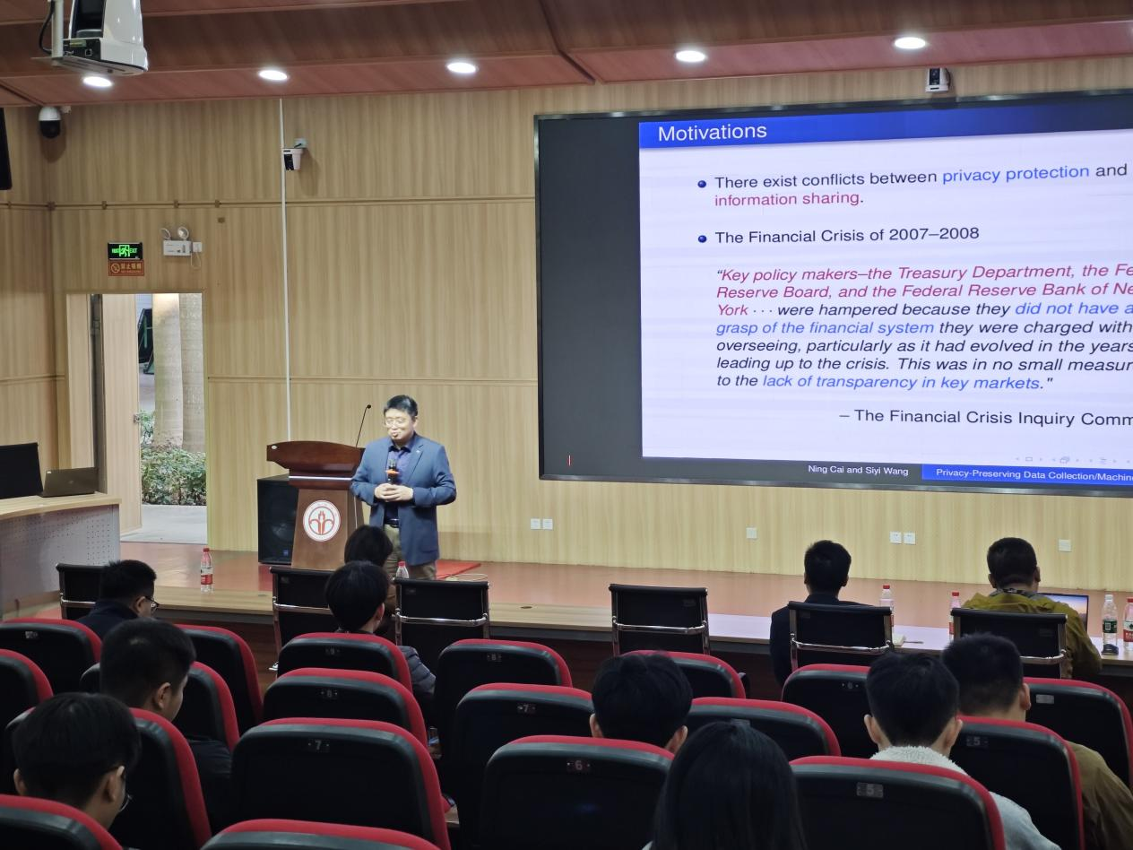 2024年12月13日,香港科技大学(广州)金融科技学域教授蔡宁,为yl7703永利的师生们带来一场题为“Data Collection and Machine Learning with Privacy Preservation”的精彩讲座。