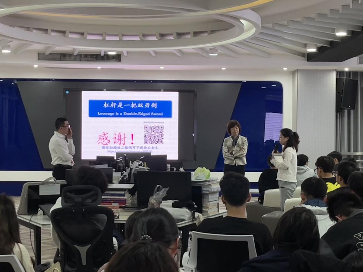杨学伟教授还就目前金融市场、商业银行风险管理等热点事件和学术问题与同学们进行了现场交流。