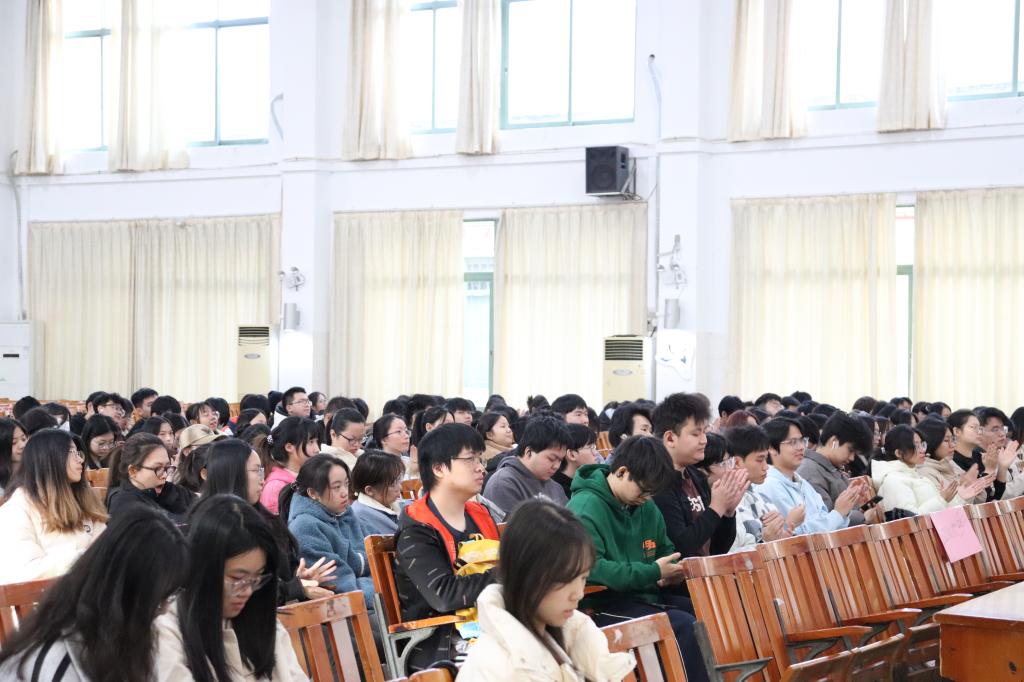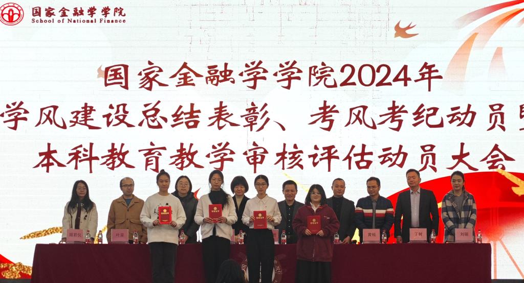紧接着,国家奖学金获得者、2022级金融科技专业员工林颖欣上台分享了她的先进事迹。她讲述了自己的成长轨迹与老员工活点滴,揭示了成功的秘诀——远大的志向、无畏的勇气与精益求精的精神。同时,林颖欣向全院员工发出了“积极备考、诚信应试、坚决抵制作弊”的倡议,号召大家共同努力,交出无愧于心的优异答卷。