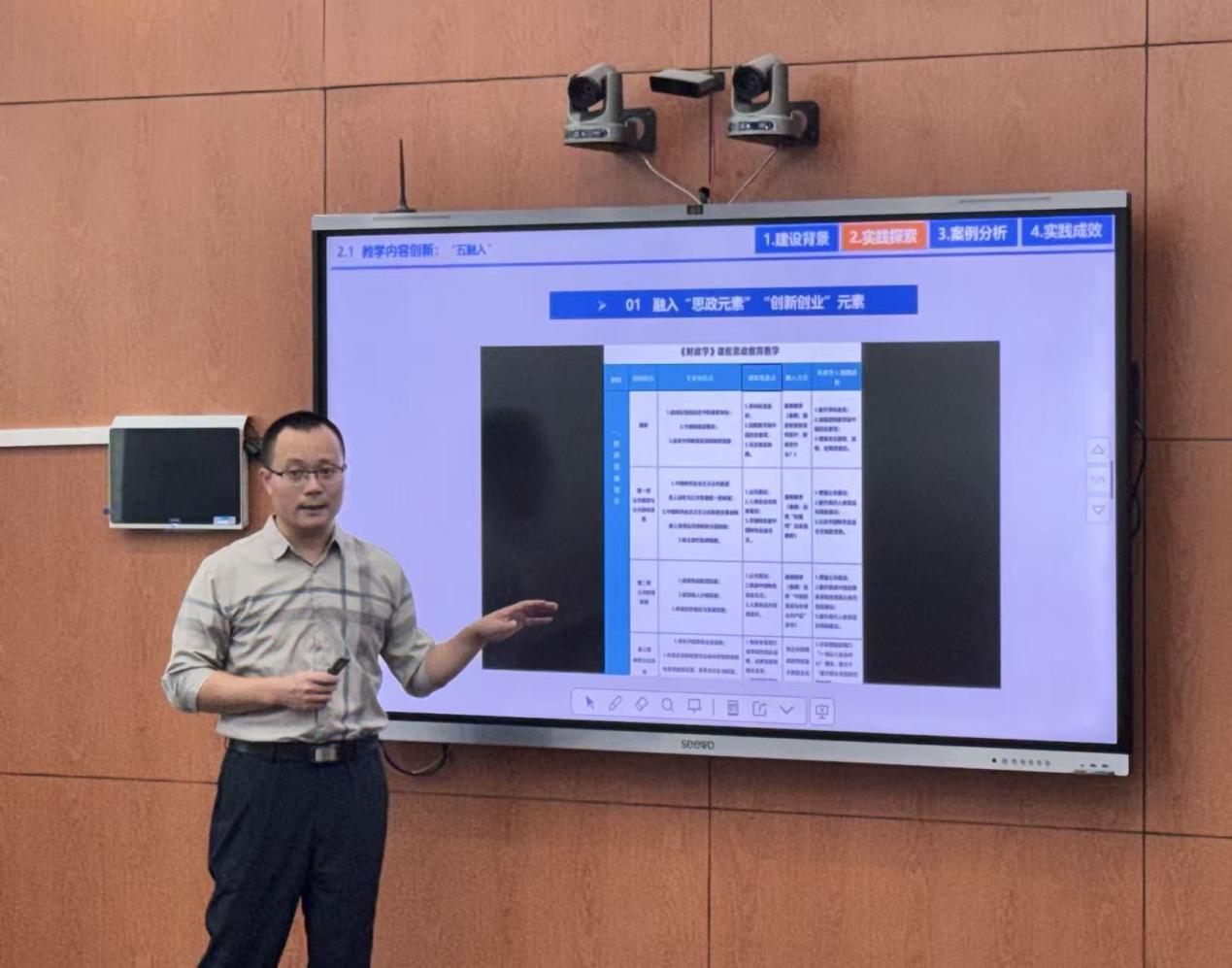 张栋贤副教授最后指出,教师需紧扣公司办学定位,明确复合型、应用型、创新型人才培养目标,深入学习课程思政建设指导纲要,将理念与方法内化于心、外化于行。教学中,既要打造有深度、有温度、有活力的第一课堂,也要重视创新创业实践的第二课堂、课外社会实践与专业实习的第三课堂,以及优质网络资源支撑的第四课堂,通过“四个课堂”协同推进课程思政内涵式建设。