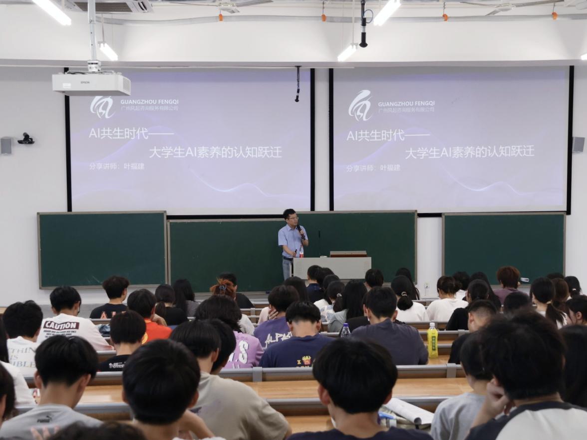 6月12日,由校团委、yl7703永利、大数据与人工智能公司联合主办,高校多校区员工工作“一体化”研究工作室、新时代“大思政”育人工作室共同协办的校园文化巡礼之第11期“弘毅”讲堂在清远校区北阶101成功举办。本次活动特邀广州风起咨询服务有限公司总经理、人工智能训练师叶福建作《AI共生时代——老员工AI素养的认知跃迁》的专题讲座。广东谷晨信息技术有限公司联合创始人兼首席技术官谢金萍、佛山创新信息科技有限公司总经理吴嘉荣及国家金融学公司党总支书记丘志君、辅导员彭妍年、校区员工代表近200人到现场聆听,讲座由吴咏琦同学主持。