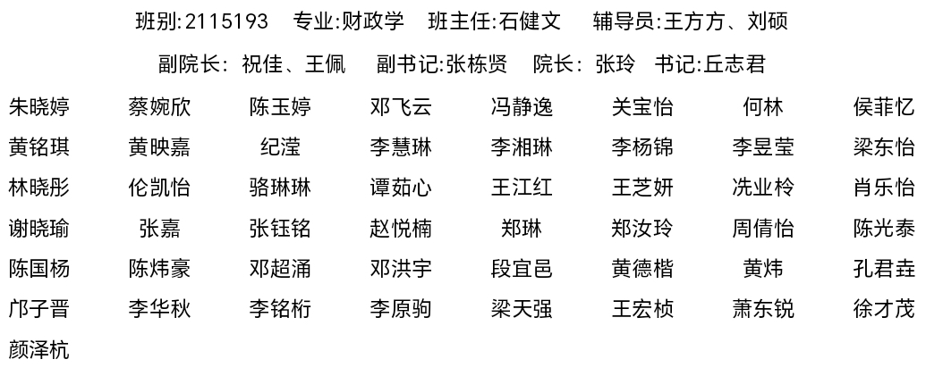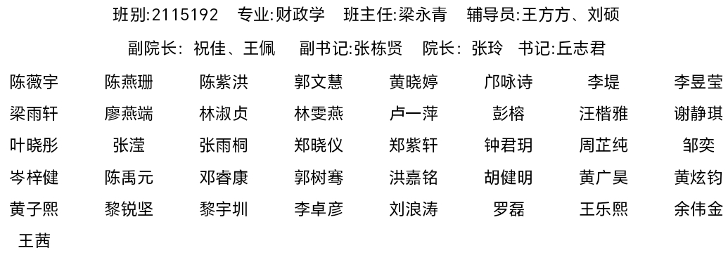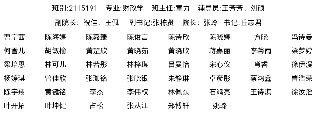 2021级财政学专业员工名录